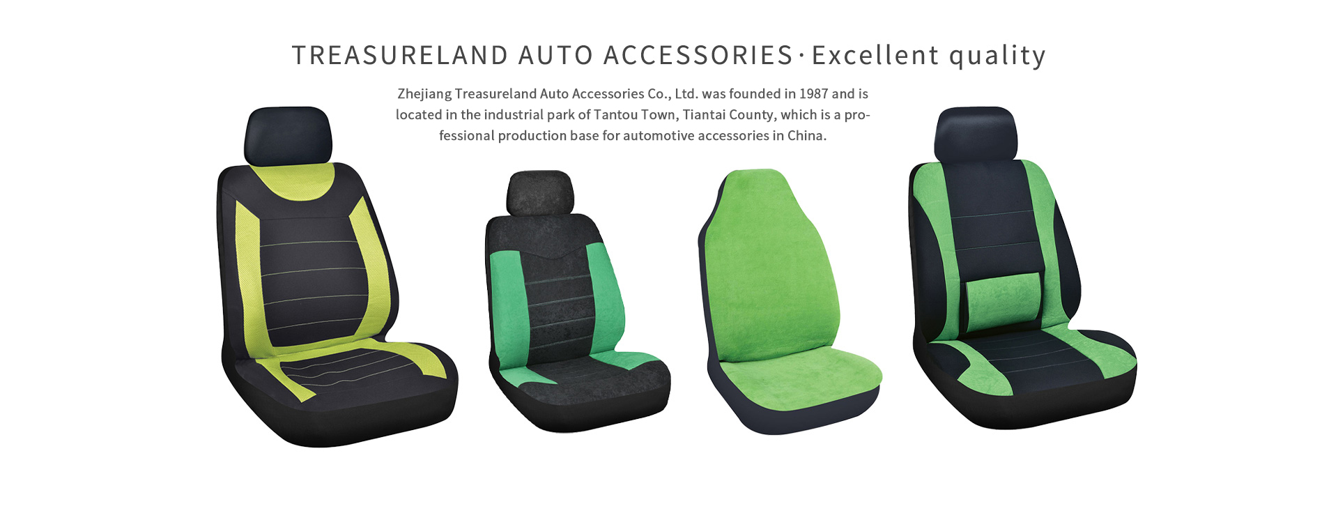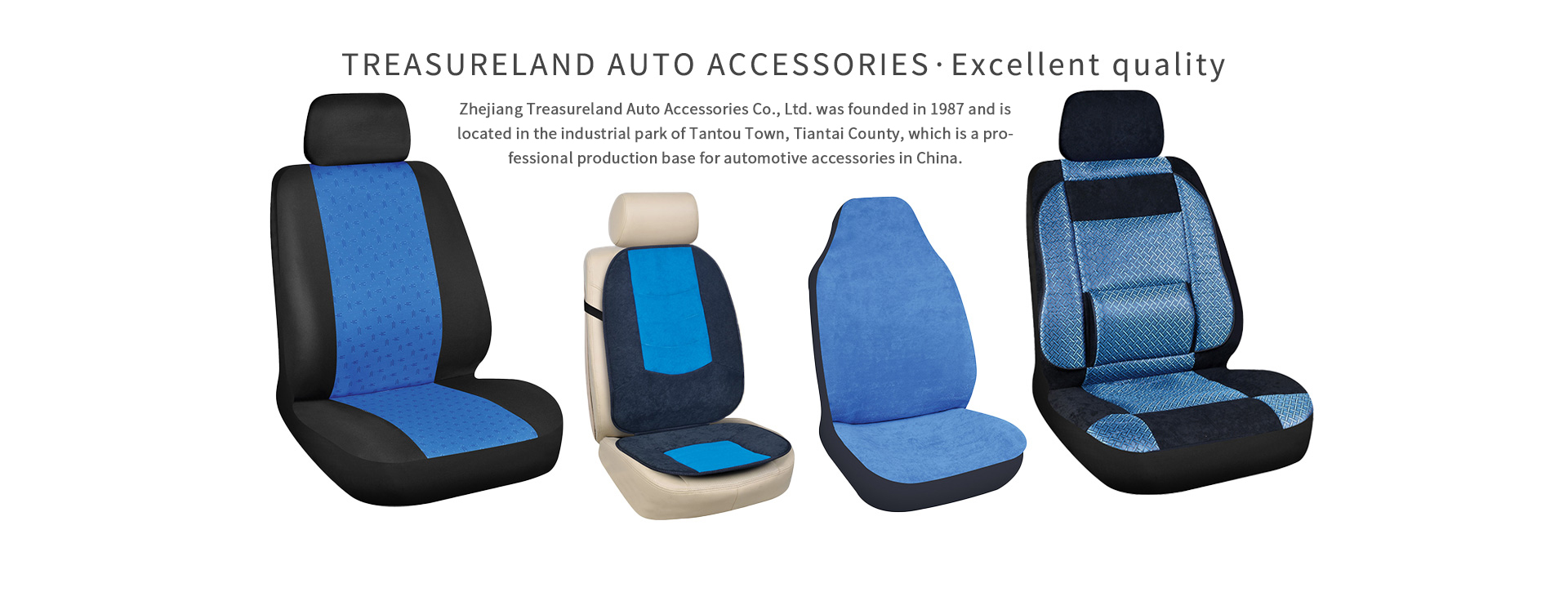 Zhejiang Treasureland Auto Accessories Co., Ltd. was founded in 1987 and is located in the industrial park of Tantou Town, Tiantai County, which is a professional production base for automotive accessories in China. It is a Sino-foreign joint venture specializing in the production of car seat covers, seat cushions, foot mats, steering wheel covers, tool kits, shoulder protectors, and other products. The company is a founding member of the first China Automotive Accessories Industry Association and has the right to engage in self-operated export trade. It has been awarded multiple advanced honors such as “Three-Star Employee Cultural Club” and “City AA Tax Credit”.
